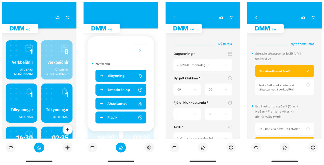 Við höfum nokkur síðustu misseri verið að vinna að ýmsum góðum nýjungum í tengslum við nýja kynslóð DMM, DMM 4.0. Nýjasta afurðin frá þessari vinnu er nýtt app, DMM 4.0 - Mitt DMM. Appið færir ýmsa mikilvæga þætti kerfisins í lófa notenda, svo sem að fá yfirlit yfir sínar verk, skrá tíma á verk, framkvæma áhættumat og skrá frávik, svo dæmi séu tekin.