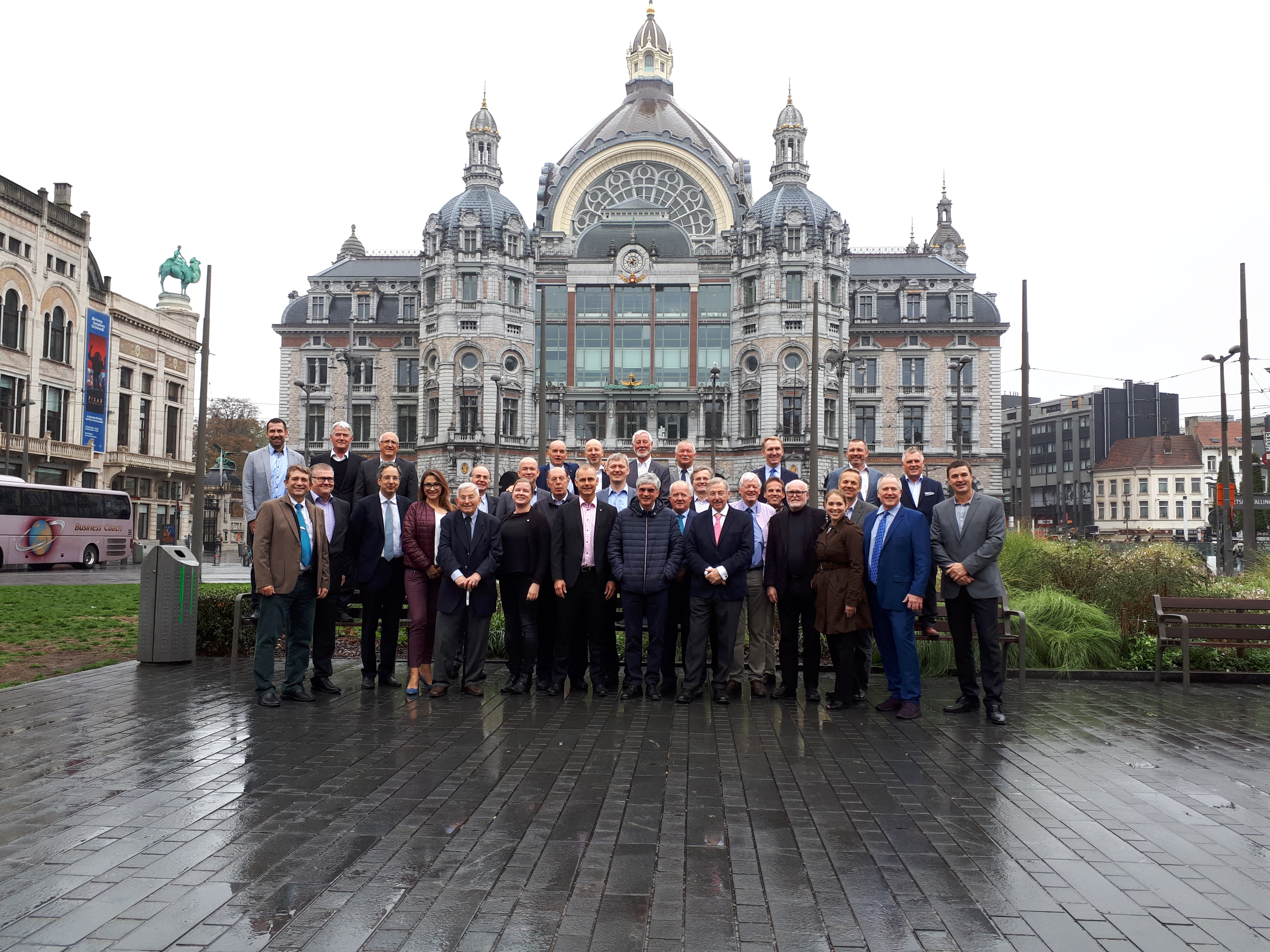 Hér má sjá alla fundarmenn GA fundarins fyrir framan lestarstöðina í Antwerpen
