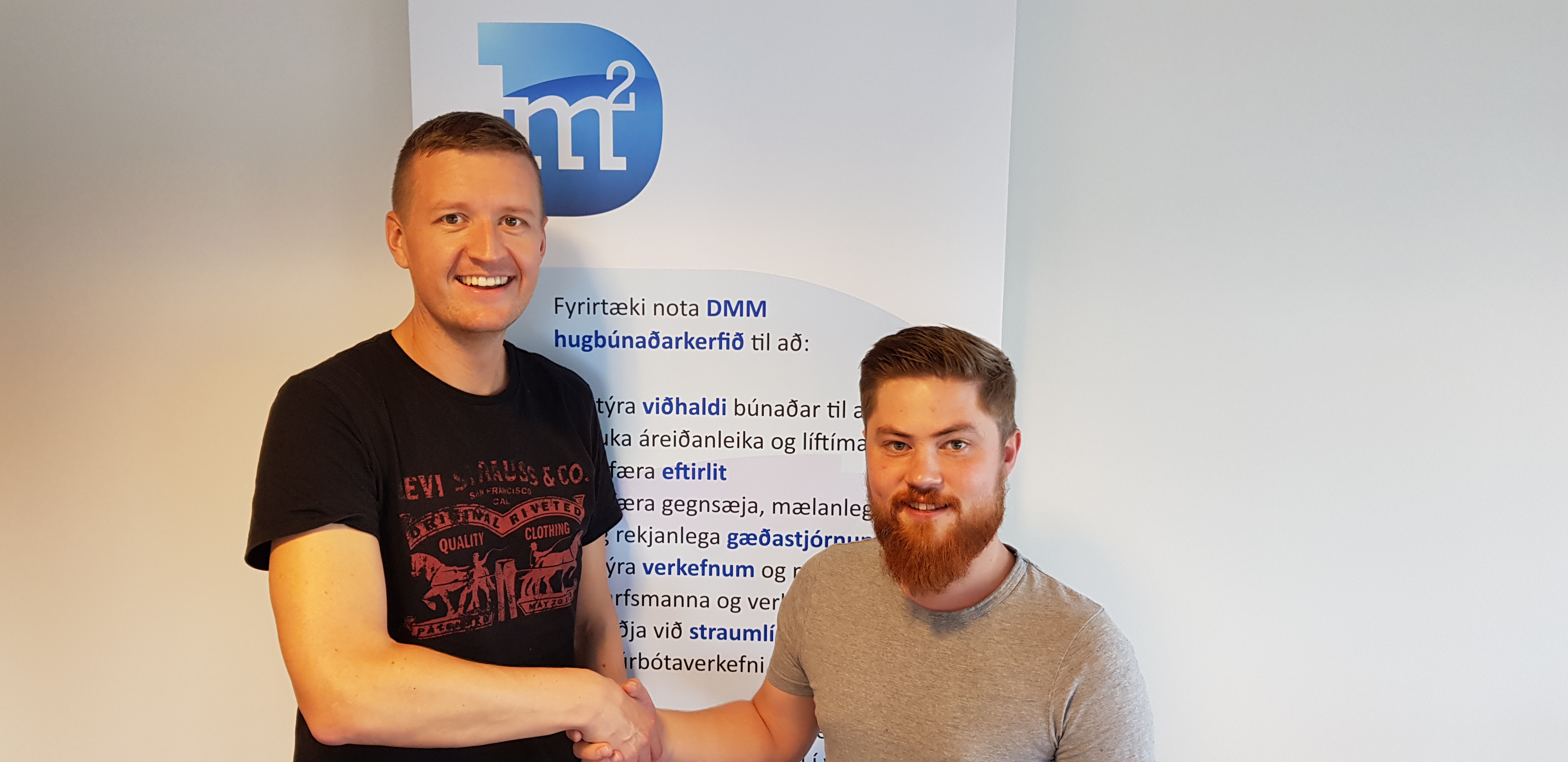 DMM Lausnir hafa fengið nýjan starfsmann í hópinn, Steinar Braga Sigurðsson. Steinar hefur áður meðal annars starfað hjá Vettvangi og hjá Vivaldi, sem forritari með áherslu á framendaforritun og þróun vefkerfa. Í meistaranámi sínu hefur Steinar lagt áherslu á gervigreind og "advanced data analytics" sem hvort tveggja eru svið sem njóta sívaxandi athygli á vettvangi hugbúnaðarlausna fyrir eigna- og viðhaldsstjórnun og munu hafa áhrif á framtíðarþróun DMM. Við fögnum því að fá öflugan liðsmann í teymið og bjóðum Steinar hjartanlega velkominn. Myndin að neðan sýnir Steinar hægra megin og Jón Inga Sveinbjörnsson, þróunarstjóra DMM Lausna, vinstra megin.