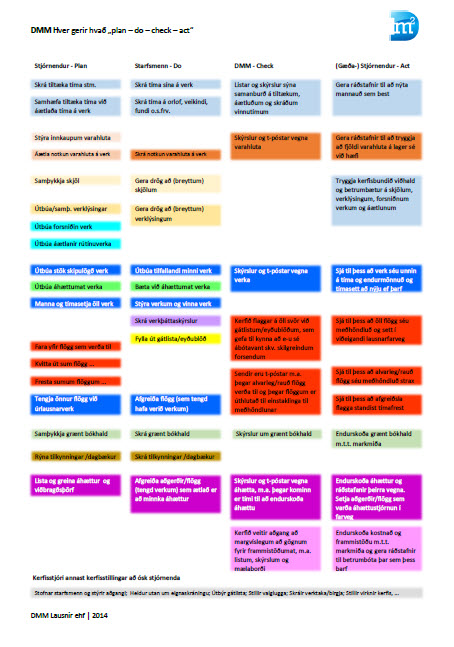 - DMM - hver gerir hvað, mynd sem sýnir helstu hlutverk, sett upp í anda Deming hringsins "plan - do - check - act"